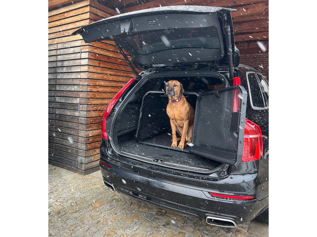 Box poskytuje psovi dostatek prostoru, dobré větrání a klidné prostředí i při delších cestách. Zároveň chrání interiér vozu před poškrábáním, nečistotami a chlupy a pomáhá udržet zavazadlový prostor přehledný a čistý.